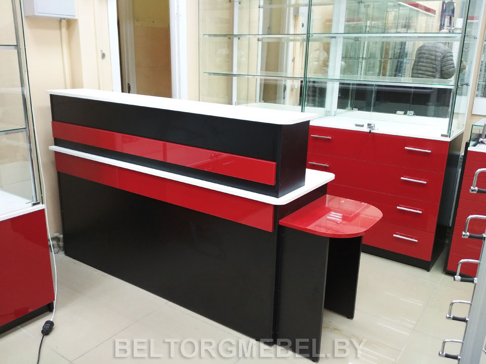 На фото: прилавок-ресепшен. Выполнен в 3 фирменных цветах компании.